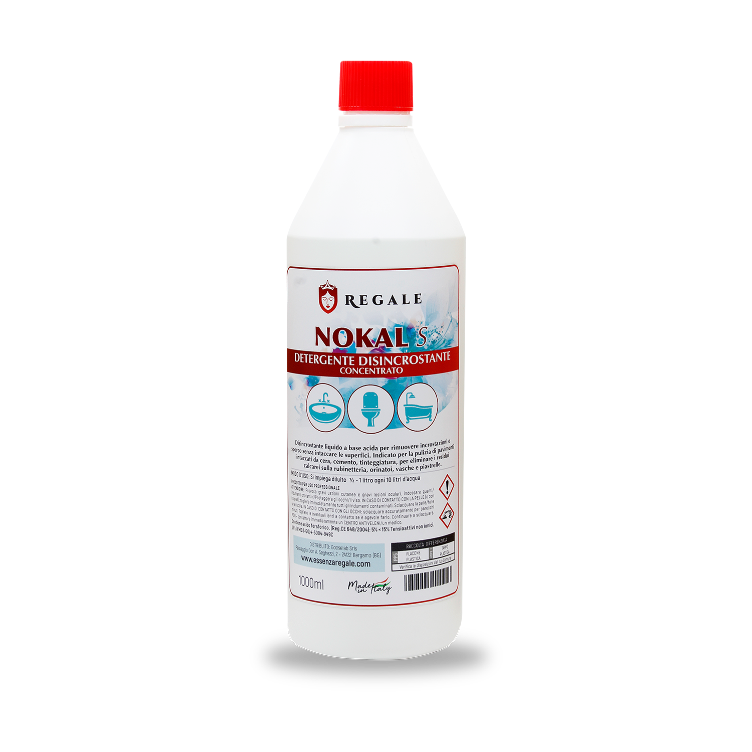 Istruzioni d’uso: si impiega pure per i servizi igienici. Si impiega diluito ½ - 1 litro ogni 10 litri d’acqua per eliminare i residui calcarei sulla rubinetteria e per la pulizia di pavimenti, vasche piastrelle